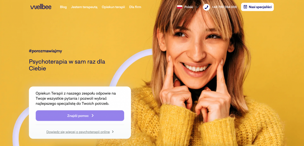 Wellbee, however, is a two-speed startup. We quickly filled the gap in the market, responding to the very need emphasised by the pandemic – improving the mental health of Poles. At the same time, however, taking into account long-term goals, we want to develop our business as a holistic service with well-being at its foundation. Simply put, we want to help people live better lives. This is what we are focusing on the most at the moment, both in the context of our B2B and B2C activities. We want our curated marketplace to be an assembly of a wide range of specialists with highly diverse specialisations, operating both online and offline, consulted by professional therapy supervisors and making use of technology that facilitates patients’ access to high-quality psychotherapy.